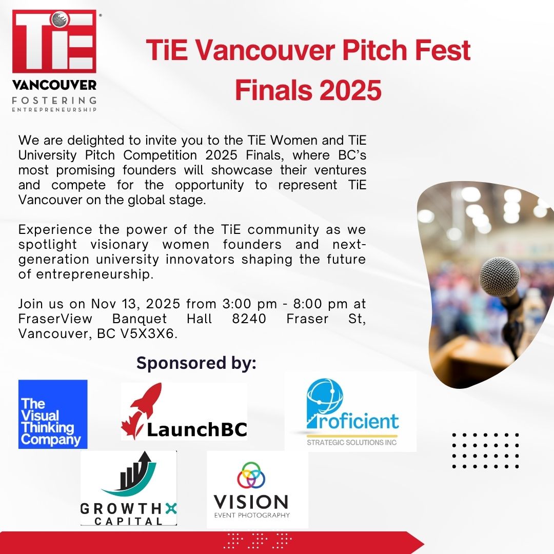 TiE Vancouver hosted the Pitch finals. spotlighting innovative startups and emerging entrepreneurs as they showcased their ideas, competed for recognition, and demonstrated the next wave of business excellence.